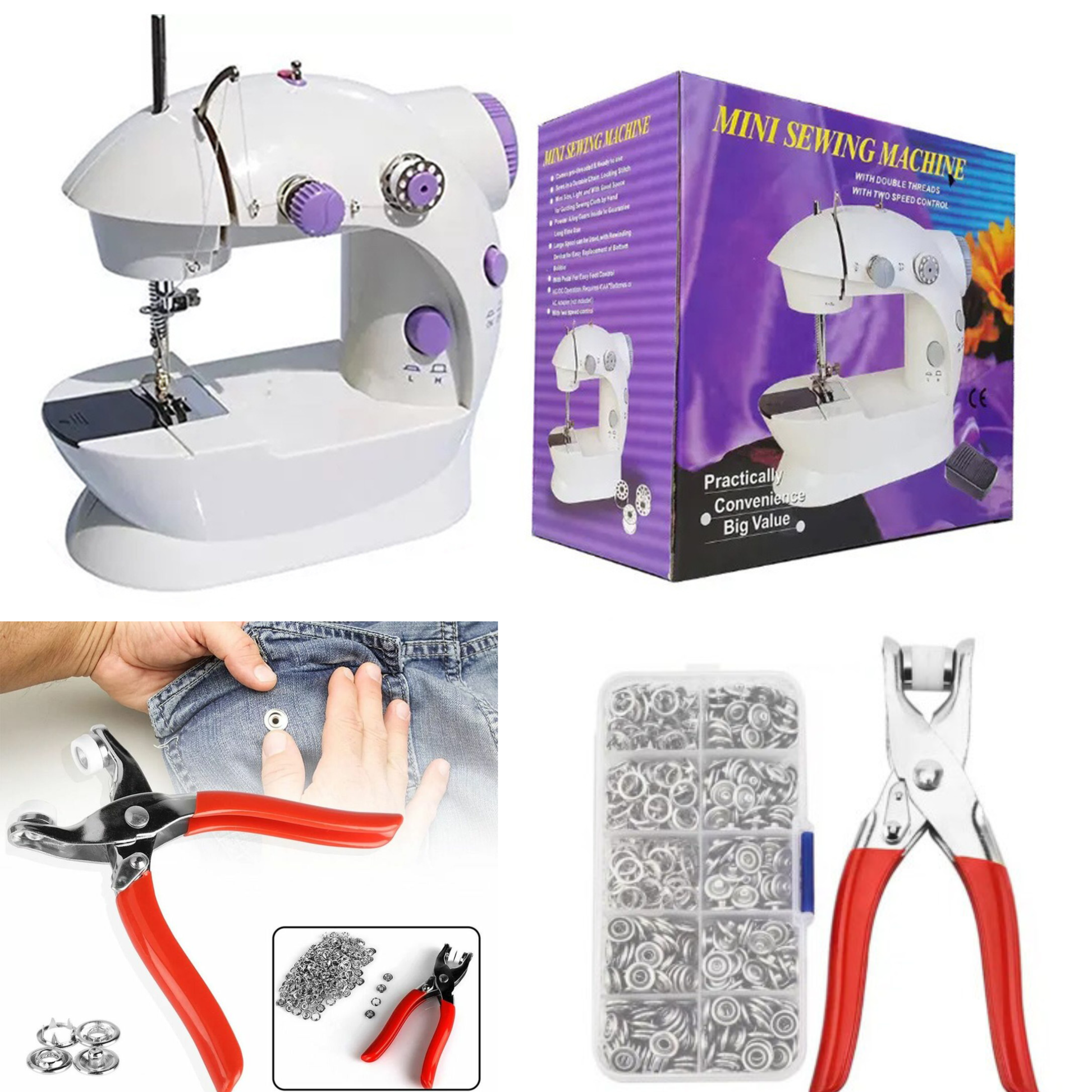 مجموعة الخياطة الذكية ( آلة خياطة صغيرة محمولة + كماشة تركيب الازرار المعدنية )